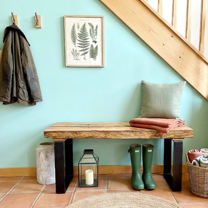 Canapé moelleux, fauteuils confortables, bibliothèque et petit bureau en chêne massif composent une pièce de vie pensée pour ralentir, sans renoncer au confort.