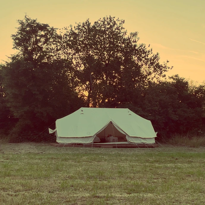 6 spacieuses tentes en coton, posées dans les prairies, pour renouer avec le plaisir simple de dormir au plus près de la nature. L’esprit est celui de l’évasion ; le confort, celui qui permet de vraiment se reposer.. Pour 1 à 4 personnes.